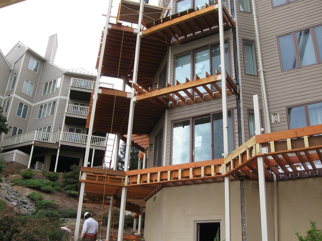 Full height steel columns replace 5 story high platform framed wood decks. Full height steel columns and wood deck framing replaces existing decks.… ← Previous Image Next Image → ↑ Return to post Leave a ReplyYou must be logged in to post a comment.